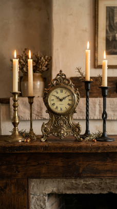 7. Antique Clock with Candlestick Holders