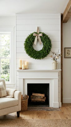 17. Boxwood Wreath Above the Fireplace