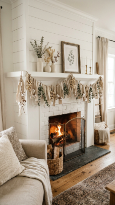 A soft linen and tallow berry garland draping across the mantle feels naturally elegant in every season.