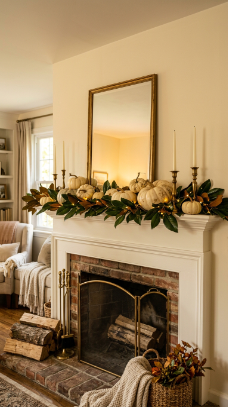 26. White Pumpkin and Magnolia Leaf Mantle
