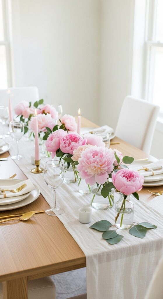 Mother’s Day Dining Table Decoration Idea With a Blush Peony Runner