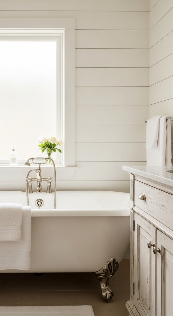 1. Shiplap Walls with a Clawfoot Tub