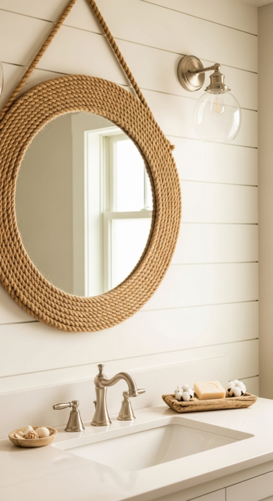 Effortlessly charming. A rope-framed mirror adds that coastal-farmhouse touch instantly.