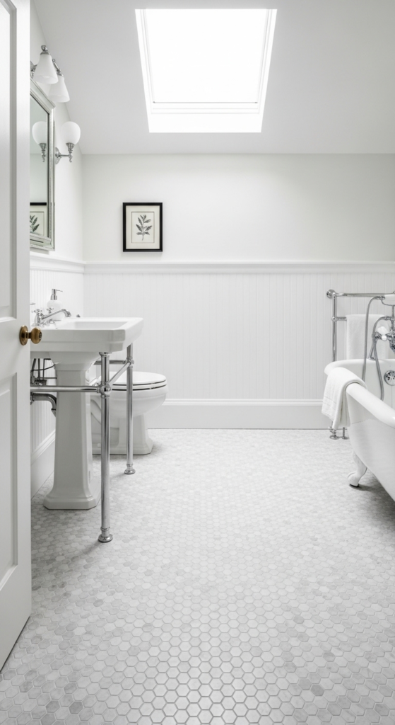 A classic pattern that never gets old. Hex tile grounds the whole farmhouse bathroom beautifully.