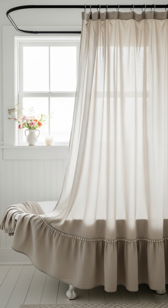 17. Linen Shower Curtain with Ruffle Detail
