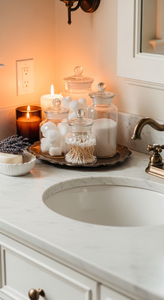 Charming, old-world, and endlessly practical. Glass apothecary jars make every counter feel curated.