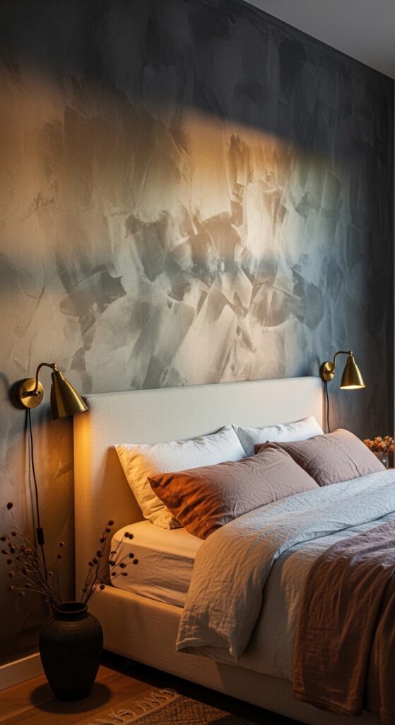 Vibe: The room feels moody — layered and intimate in the way only textured walls can achieve.