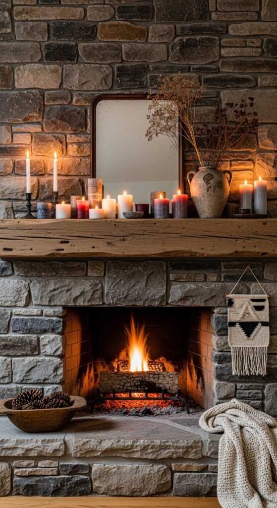 23. Stone Fireplace Hearth With Boho-Layer Mantle
