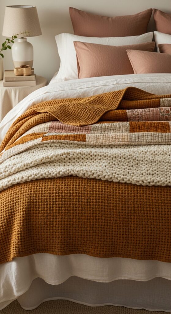 24. Earthy Tonal Bedding Layers for Deep Comfort