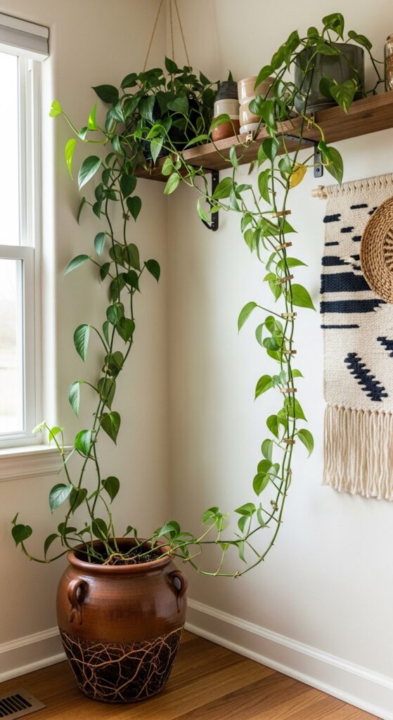 💡 Quick Win: A 6-inch pothos in a $4 terracotta pot from a garden center is the most affordable starting point for this look — within 18 months in a reasonably bright room, it will trail 4–6 feet and completely change the room’s energy.