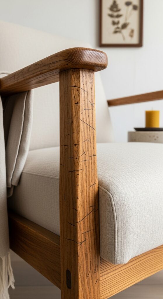 How to get it: Source vintage armchairs from estate sales, Facebook Marketplace, or Craigslist ($20–$80 for solid frames in need of upholstery). Have a local upholstery shop recover them in undyed Belgian linen — this service typically costs $150–$300 for a chair and extends the piece’s life by decades. The total investment remains far below the cost of a new quality armchair.
