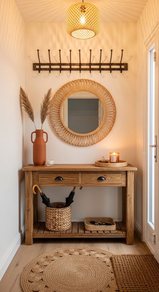 27. Boho Farmhouse Entryway With Functional Warmth