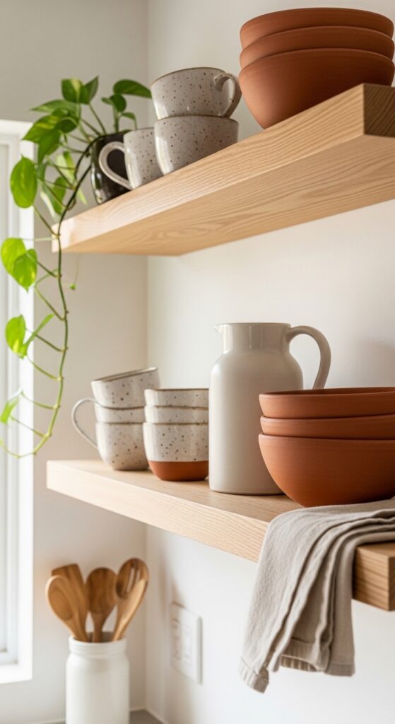 4. Open Shelf Styling With Handmade Ceramics
