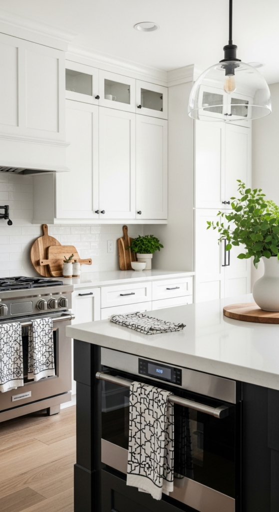 That classic farmhouse contrast—modernized by keeping everything streamlined and intentionally minimal.