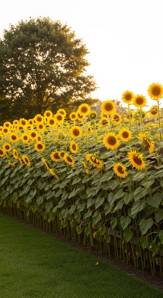 Planting an entire back fence line with giant sunflowers — eight feet tall, faces tilted toward the sun, packed shoulder to shoulder in a magnificent golden wall — is a backyard transformation that takes your breath away every single morning of late summer. Use Russian Giant or Mammoth varieties for maximum drama. Style tip: plant in staggered rows for a fuller effect. Perfect for optimists, summer lovers, and those who believe a garden should make you feel something every time you look at it.