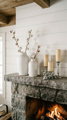 14. Cotton Stem and Ceramic Mantel Styling