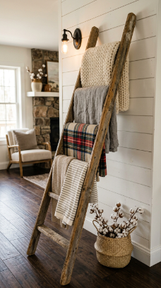 18. The Farmhouse Ladder Blanket Display