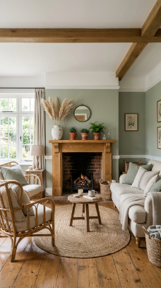 19. Sage Green Walls and Warm Timber