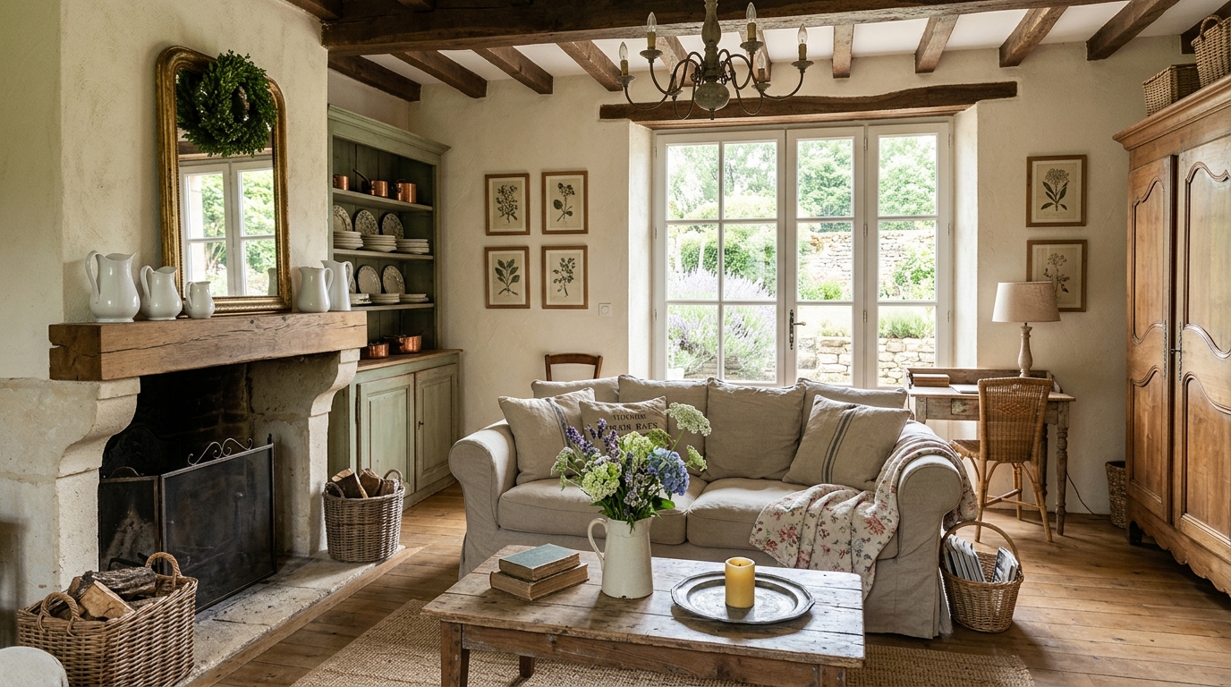 The farmhouse living room is where everything slows down. It’s the worn leather sofa you sink into, the crackling fireplace you never want to leave, the linen curtains that catch the morning light just right. It’s comfort made beautiful and beauty made comfortable.