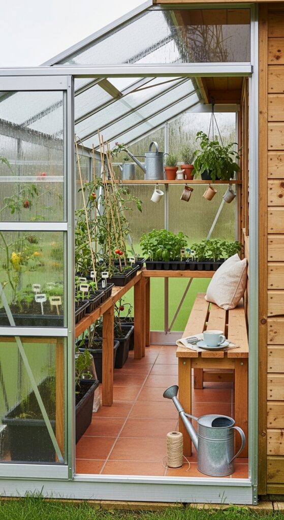 How to achieve it: Aluminium-frame lean-to greenhouse kits are available from Halls Greenhouses and Eden Greenhouses in widths from 1.5m at approximately £400–800 installed. Orient the opening on the south or south-west face of the summer house for maximum solar gain. Terracotta quarry tile flooring retains heat through the day and releases it overnight.