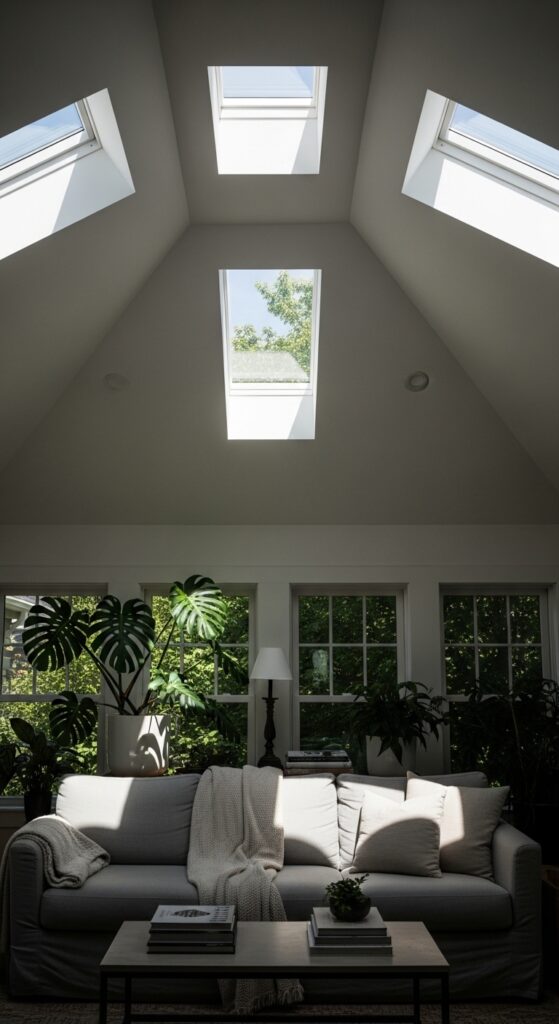 How to achieve it: Fixed-pane skylights are the most cost-effective option, starting around $500 for the unit plus installation. Velux is the most widely respected brand. Specify Low-E glazing to reduce heat gain while maintaining full light transmission.