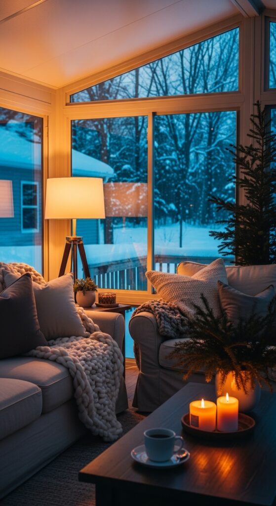 What makes it work: A properly insulated four-season sunroom with radiant floor heat turns what could be a seasonal room into the most-used space in the house year-round. The visual drama of winter light and snow through triple-pane glass — from the comfort of a warm, furnished interior — is one of the most rewarding experiences in home design.