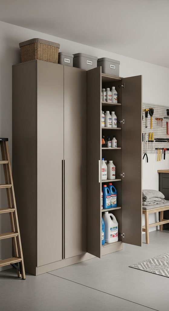 3. Garage Storage Ideas That Hide Clutter in Tall Cabinets