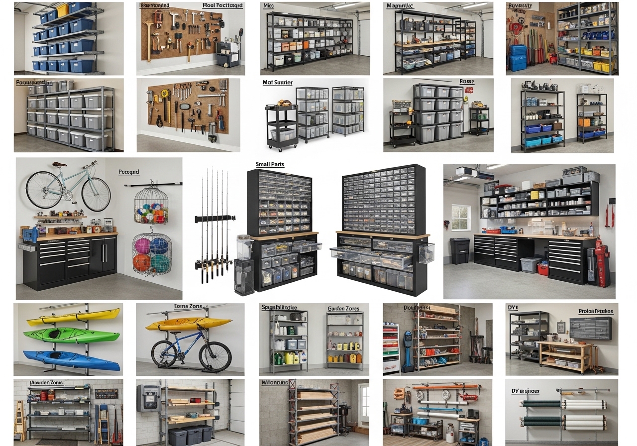 Avoid the common mistake of buying containers before creating zones. Sort first into categories like tools, sports gear, gardening, paint, seasonal décor, and car care. Once you know what you actually own, it becomes much easier to choose the right garage organization systems and avoid wasted money.