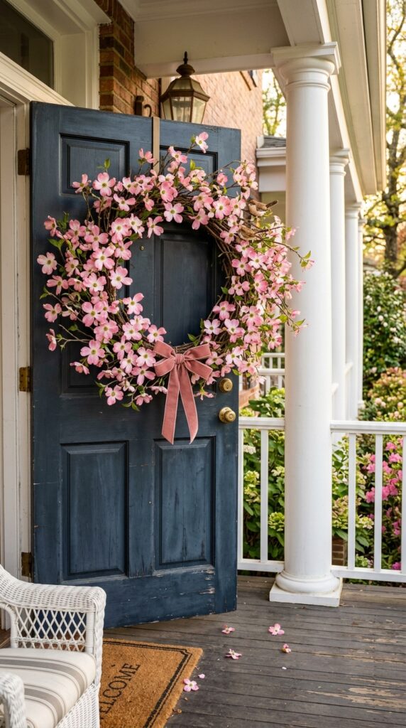 Pink Dogwood Branch Wreath for a Southern Spring Porch