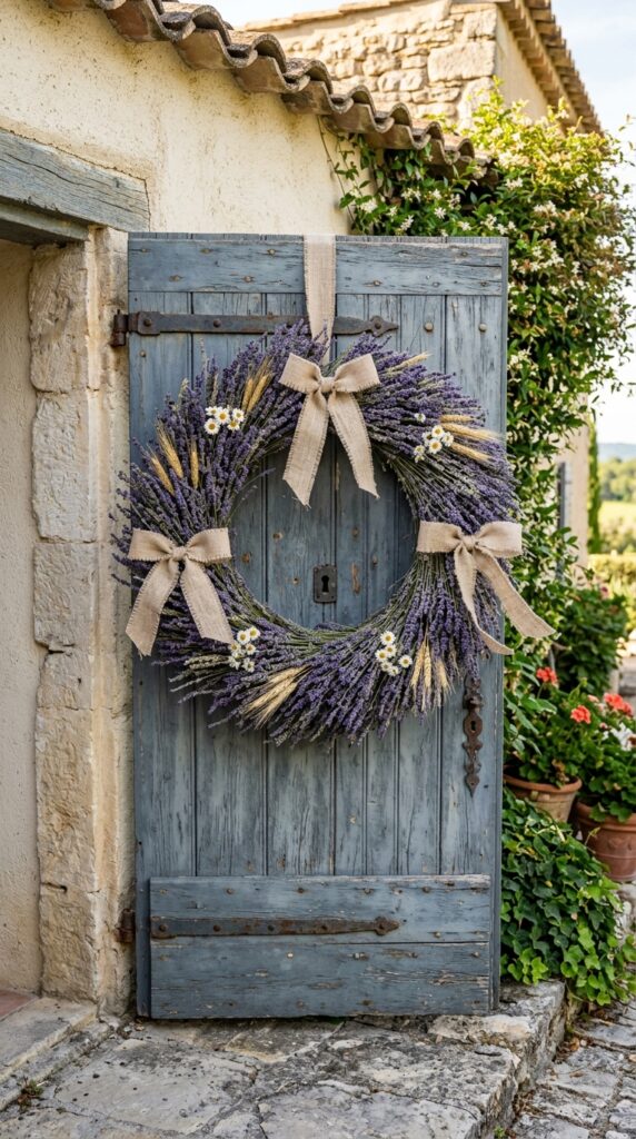 A lavender wreath is a sensory experience, not just a visual one — anyone who passes by will pause, and that particular fragrance is one of the most universally beloved in the world.