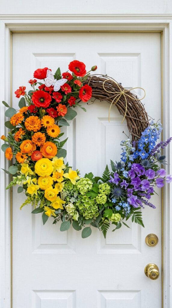 A rainbow wreath is the most unapologetically joyful thing you can put on a front door — and arranged with intention, it reads as sophisticated rather than chaotic.