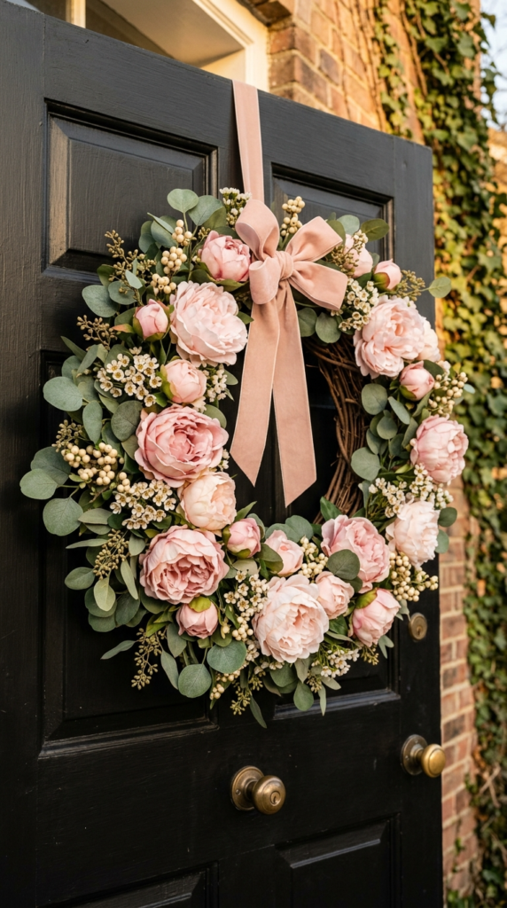 A peony wreath in full bloom is arguably the most romantic thing you can hang on a front door — lush, soft, and undeniably celebratory.