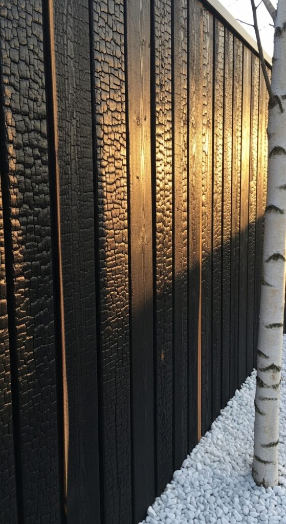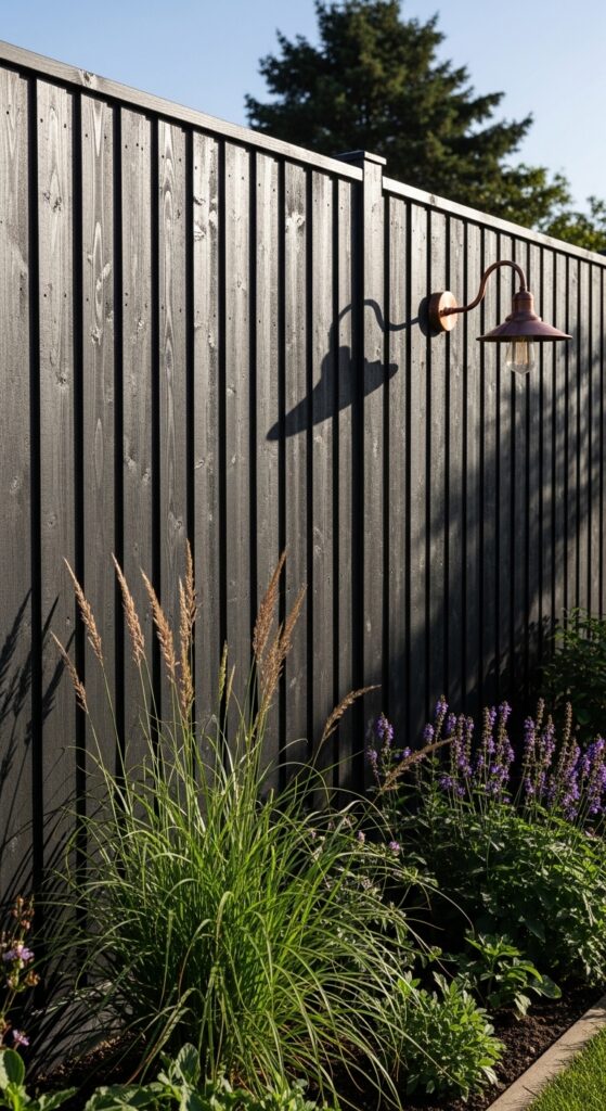 Vibe: Dark, graphic, and completely modern — the kind of fence that makes a garden feel like a designed outdoor room.