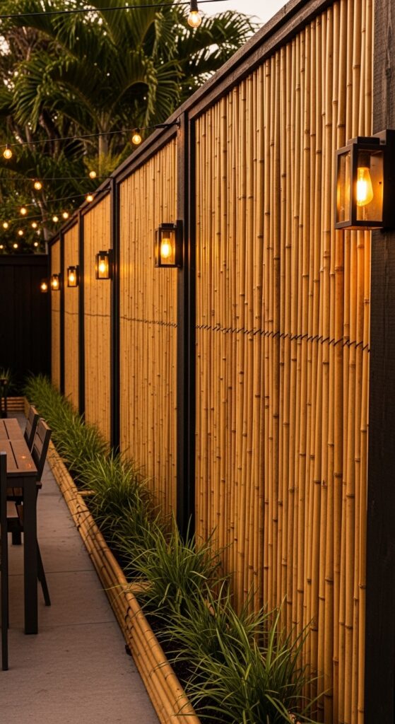 How to achieve it: Choose pressure-treated or kiln-dried bamboo panels for outdoor use — untreated bamboo will split and crack within two seasons in most climates. Frame panels in powder-coated steel or hardwood posts for structural longevity. Seal with exterior bamboo oil annually to slow the natural weathering process.