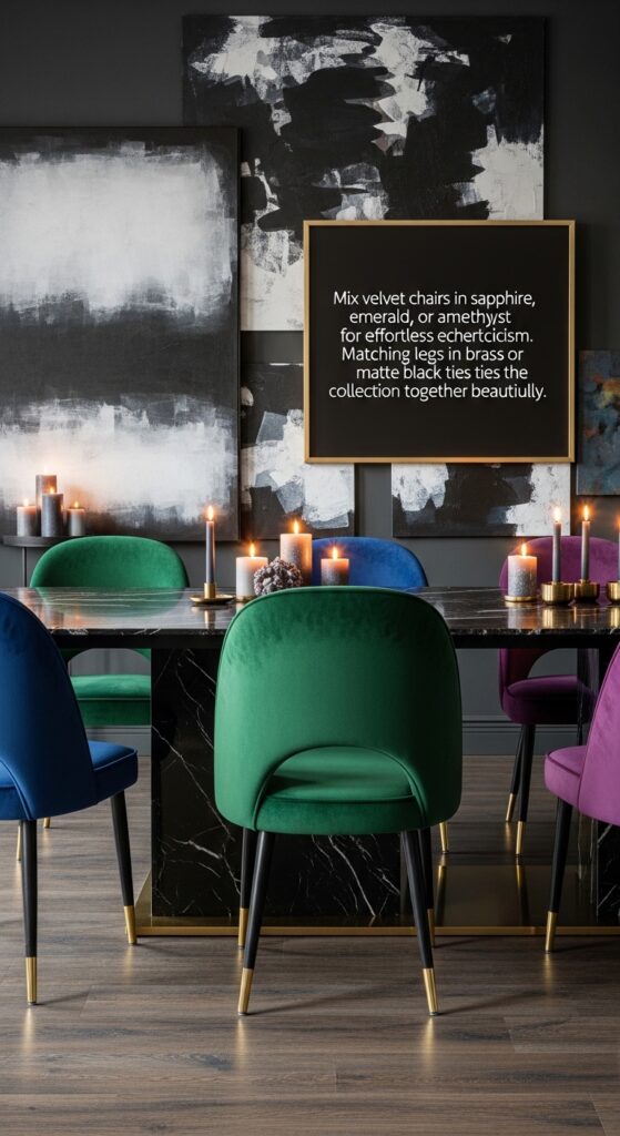 2. Velvet Jewel-Tone Chairs