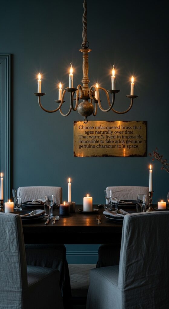 Text: Choose unlacquered brass that ages naturally over time. That warm, lived-in patina is impossible to fake and adds genuine character to the space.